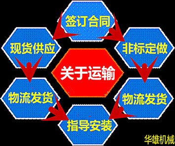 華雄機(jī)械對于常規(guī)產(chǎn)品現(xiàn)貨供應(yīng),當(dāng)天訂貨,當(dāng)天發(fā)貨,購買便捷。我公司按照合同規(guī)定的時間、地點,把貨物運輸?shù)侥康牡?。貨物托運后,我公司按照物流變更隨時通知收貨人。對于非標(biāo)定制,我公司在預(yù)定工期內(nèi)完工之后及時通知客戶,如客戶有指定物流或快遞,我們會按照客戶要求發(fā)貨,如果客戶無特殊制定物流或快遞,我公司默認(rèn)德邦物流發(fā)貨。