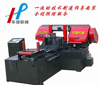 鋸床進(jìn)給導(dǎo)向采用雙線性導(dǎo)軌,導(dǎo)向精度高,摩擦系數(shù)小,使用壽命長(zhǎng);工作進(jìn)給采用直接電機(jī)絲桿,進(jìn)給平穩(wěn),可無(wú)級(jí)調(diào)速;可根據(jù)用戶需要,安裝電動(dòng)送料承料臺(tái),方便送料;合理的工作臺(tái)設(shè)計(jì),方便更換鋸條。